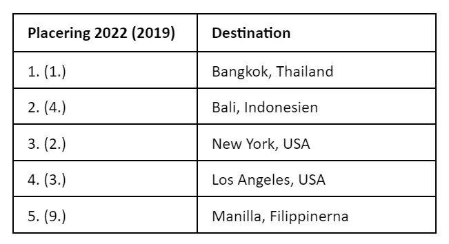 – Svenskarnas stora favorit sedan länge är ju Thailand och Bangkok. Bangkok ligger kvar på en säker första plats bland de mest sökta destinationerna med lång restid. Några uppstickare i år jämfört med 2019 är däremot Bali på andraplats och Manilla på en femteplats, som visar på svenskarnas starka intresse för Sydostasien när det kommer till långväga resor, säger Per Christiansen, talesperson för momondo.